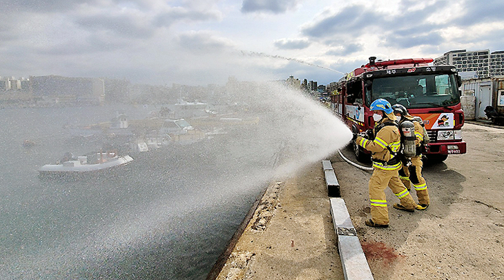 제주소방서는 최근 선박 화재에 대비해 선박 화재 제로화 프로젝트를 추진한다고 21일 밝혔다. 이를 위해 지난 18일 제주소방서 관할 구역 내 주요 항·포구를 대상으로 선박화재 진압 훈련을 실시했다.