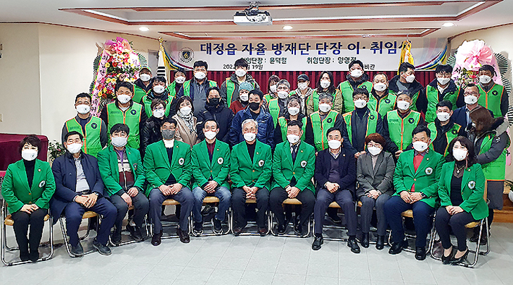 서귀포시 대정읍은 지난 19일 주민센터 웅비관에서 대정읍 지역자율방재단 이·취임식을 개최했다. 이날 신임 양영진 방재단장과 단원 38명은 재난 발생 시 인명과 재산 피해 최소화하는 등 보다 나은 지역발전을 위한 방재단으로서의 역할을 다짐했다.