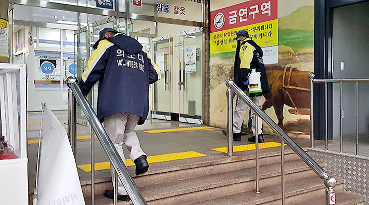 제주소방서 이도119센터 직할·다문화의용소방대(대장 홍성훈·변인순·류은진)는 지난 20일 코로나19 감염확산 예방을 위한 관내 다중이용시설을 대상으로 코로나19 방역활동을 실시했다.
