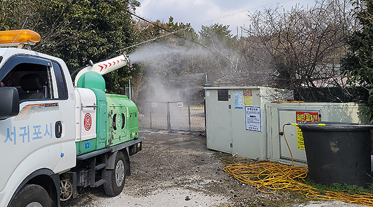 서귀포시 남원읍은 지난 18일 지역 내 가금농가 5곳과 주변 지역을 대상으로 고병원성 AI 예방 방역을 실시했다. 남원읍은 선제적으로 AI 차단을 위해 가금농가를 대상으로 꾸준히 방역을 전개하고 있다.