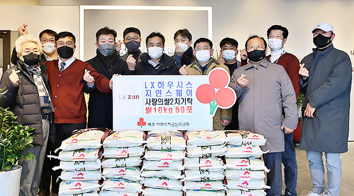 LX하우시스 지인스퀘어는 지난 18일 LX하우시스 매장에서 2차 사랑의 쌀 전달식을 갖고 백미 500㎏을 제주사회복지공동모금회(회장 강지언)에 기탁했다.