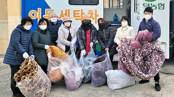 함덕농협(조합장 현승종)은 지난 18일 함덕농협 산지유통센터에서 임직원과 농촌사랑자원봉사단 10여명이 참여해 이동세탁차량을 이용한 세탁봉사를 진행, 홀몸 어르신 가정의 세탁물을 수거해 세탁·건조 후 전달하면서 안부도 살폈다.