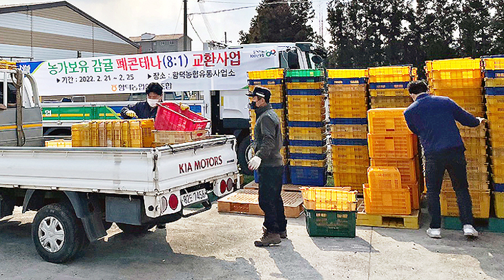함덕농협(조합장 현승종)은 지난 21일부터 25일까지 농협 산지유통센터에서 '농가보유 농산물 운반용 파손된 플라스틱상자(폐컨테이너) 교환사업'을 진행하고 있다. 올해 처음 진행하는 사업으로 낡은 상자 8개를 새 상자 1개로 교환하는 것을 원칙으로 한다.