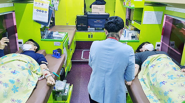 제주은행(은행장 서현주)은 코로나19 오미크론 변이 확산으로 인한 도내 혈액 수급난에 힘을 보태기 위해 22일 제주혈액원과 사랑의 헌혈행사를 갖고 본부 임직원들이 헌혈에 참여했다.