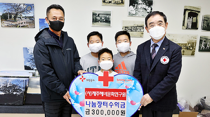 (사)제주해녀문화연구원(원장 조남용)은 최근 상명정낭문화공간에서 대한적십자사제주특별자치도지사(회장 오홍식)에 소외된 이웃을 돕는 데 써달라며 나눔장터 수익금 30만원을 기탁했다.