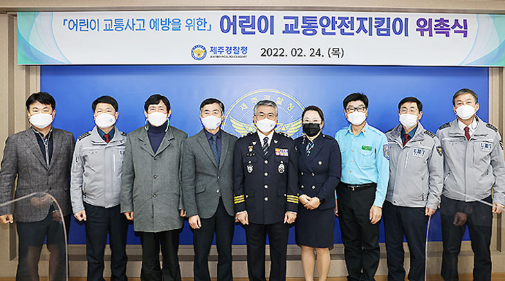 제주경찰청 자치경찰 부서(경비교통과 안전계)는 24일 제주청 2층 한라상방에서 '어린이 교통안전지킴이' 위촉식을 개최했다.