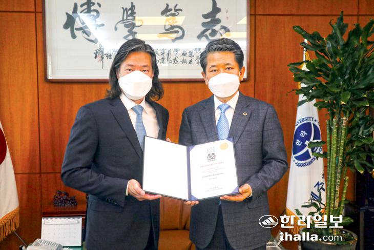 사단법인 코리아푸드앤와인페스티벌(이사장 정문선)은 최근 제주한라대학교에 미래셰프인재 육성장학금을 전달했다.