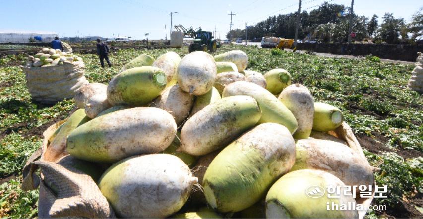 7일 서귀포시 대정읍에서 월동무 수확이 한창이다. 이상국기자