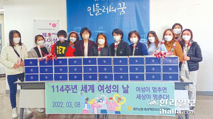 제주농협여성책임자모임인 '한란회'(회장 김연희)는 8일 세계여성의 날을 맞아 제주이주여성상담소(소장 김산옥)를 방문해 장미꽃과 케이크 30세트를 전달했다. 제주이주여성상담소는 2019년 12월 개소 이후 이주여성과 동반 가족의 인권보호를 위한 서비스를 지원하고 있으며, 케이크와 장미는 폭력피해·한부모가정·자립지도 여성 가장 등에 전달할 예정이다.