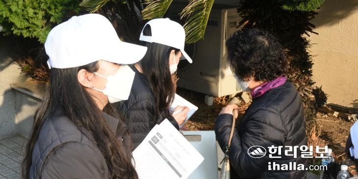 대통령선거일인 9일 제주시 이도2동 제7투표소 앞에서 한 방송사 출구조사원이 출구조사를 하고 있다. 이상국기자