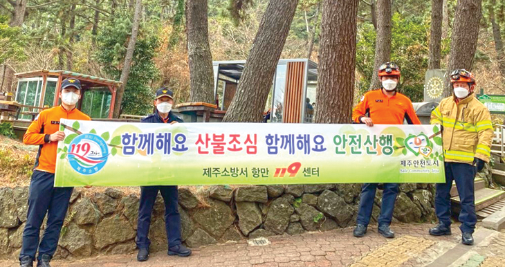 제주소방서 항만119센터(센터장 양영국)는 산불 발생 위험이 높아짐에 따라 14일 봄철 산불예방대책의 일환으로 관내 사라봉에서 산불 예방 캠페인을 추진했다.
