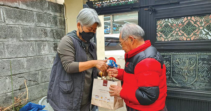 제주시 삼도2동지역사회보장협의체(공동위원장 이상철, 안명희)는 지난 11일 협의체 특화사업인 '행복꾸러미 지원사업'으로 관내 복지 취약 10가구에 음식(해장국, 빵)과 생필품(파스)을 전달했다.