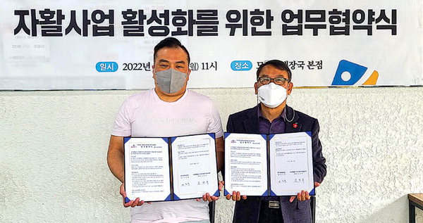 제주자치도광역자활센터(센터장 김성복)와 모이세해장국(대표 안현석)은 14일 모이세해장국 본점에서 저소득층 자활사업 활성화를 위한 업무협약을 체결했다.