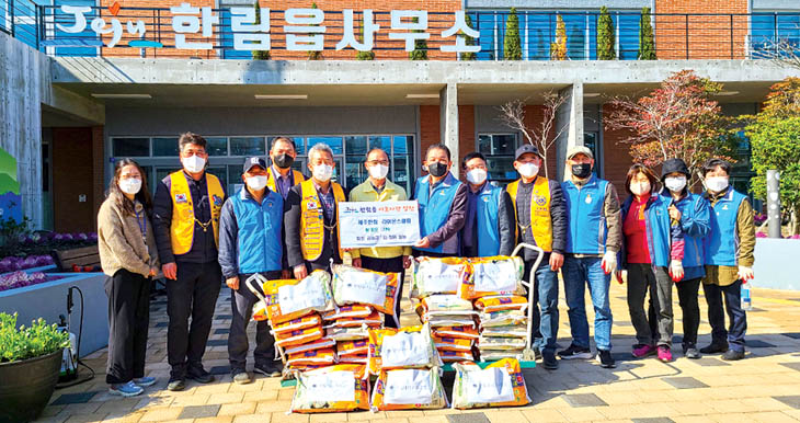 국제라이온스협회 354-G(제주)지구 한림라이온스클럽(회장 김승규)은 지난 15일 제주시 한림읍사무소를 방문해 이웃사랑 나눔 물품 백미 10㎏ 30포(100만원 상당)를 전달했다.