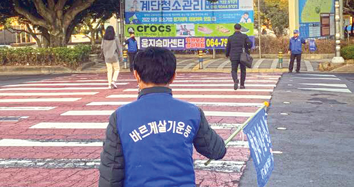 바르게살기운동연동위원회(위원장 고운산)는 지난 14일 신제주로터리에서 위원 10여명이 참여해 시민들의 안전한 등교와 출근을 돕는 교통지도 캠페인을 실시했다.