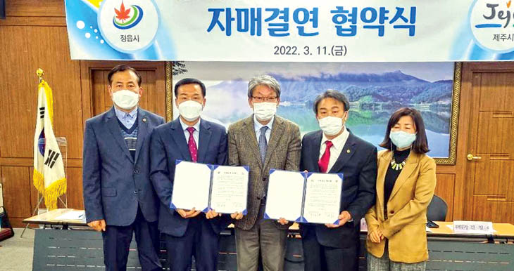 제주시 이도2동주민자치위원회(위원장 김두혁)와 정읍시 내장상동 주민자치회(위원장 이복생)는 지난 11일 정읍시 내장상동 주민센터에서 자매결연 협약식을 개최했다.