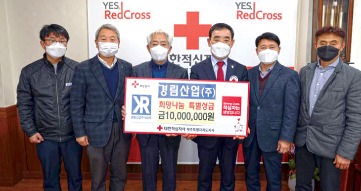 경림산업(주)(대표 김기형)은 지난 15일 대한적십자사제주특별자치도지사(회장 오홍식)를 방문해 소외된 이웃을 돕기 위한 희망나눔 특별성금 1000만원을 전달했다.