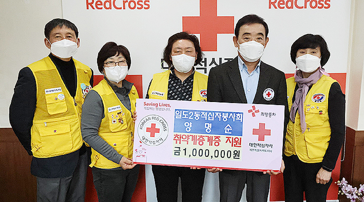제주시 일도2동적십자봉사회 양명순 봉사원은 지난 16일 대한적십자사제주특별자치도지사(회장 오홍식)를 방문해 취약계층 지원을 위한 후원금 100만원을 전달했다. 이번 성금은 일도2동 관내 취약계층을 돕고자 전달됐다.