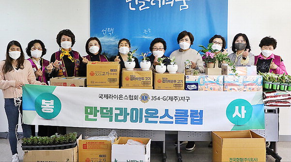 제주만덕라이온스 클럽(회장 이복임)은 지난 16일 제주이주여성상담소를 찾아 이용자들을 대상으로 '봄맞이 정원' 만들기 프로그램과 더불어 쌀 등 생필품(200만원 상당)을 전달했다. 특히 코로나19 장기화로 집에 머무는 시간이 늘어난 이주여성들과 함께 봄맞이 정원을 직접 만들며 반려식물과 교감하는 시간을 선사했다.