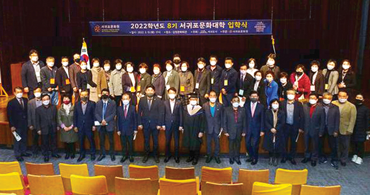 서귀포문화원은 지난 15일 김정문화회관에서 서귀포문화대학 8기 입학식을 가졌다. 올해 문화대학은 12월 6일까지 서귀포문화원 강의실에서 도내·외 전문가들의 강의와 현장답사 등이 진행된다.