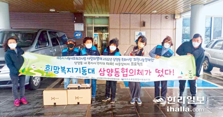 제주시 삼양동지역사회보장협의체(공동위원장 오봉식, 김명금)는 지난 19일 관내 홀몸 어르신, 장애인 등 40가구에 영양밀키트를 전달하고 안부를 확인하는 '희망복지기동대, 삼양동협의체가 떴다' 사업을 진행했다. 오봉식 삼양동장은 "앞으로도 이웃이 이웃을 돌보는 촘촘한 사회안전망 구축에 최선을 다하겠다"고 했다.