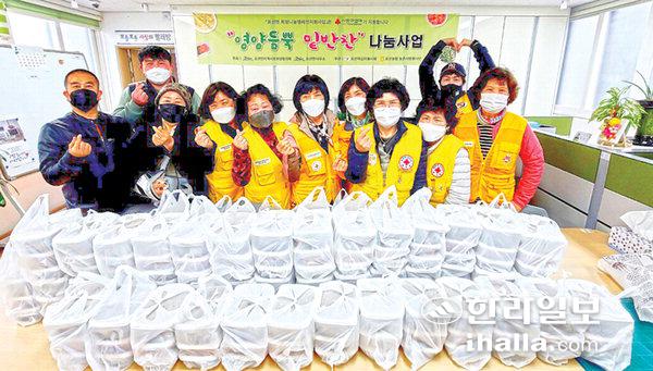 표선면지역사회보장협의체(위원장 김명호)와 표선적십자봉사회(회장 신송임)는 지난 18일 지역 내 홀몸어르신, 장애인, 한부모가정 등 저소득 취약계층 70가구를 대상으로 '영양듬뿍 밑반찬 지원' 사업을 전개했다. 이 사업은 매달 1회 저소득 결식 우려 가구에 밑반찬을 조리하고 전달하는 사업으로, '희망나눔 표선 2.0 캠페인' 기금으로 운영되고 있다.