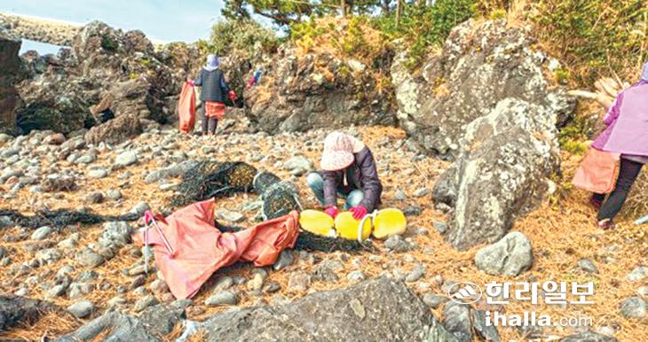 서귀포시 남원읍은 지난달 18일부터 바다환경지킴이 12명을 2개조로 나눠 지역 내 해안변 22㎞(쇠소깍 경계 하례리~신흥리 토산경계) 구간에 대한 정화활동을 전개하고 있다.