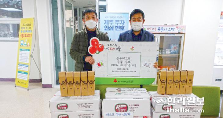 제주시 용담1동청소년지도협의회(회장 양철규)는 지난 21일 용담1동주민센터에 쌀10gk 10포, 참기름 10개를 기부했다. 기부 물품은 용담1동에서 한 달에 한 번 저소득가구에 물품을 제공하는 '통통이고팡'에 비치돼 저소득가구에 지원될 예정이다.
