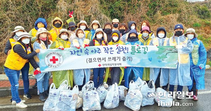 안덕면적십자봉사회(회장 고명화)는 지난 19일 지역 일원에서 회원 20여명이 참석한 가운데 해안변 등에 버려진 쓰레기를 수거하는 플로깅 활동을 전개했다. 봉사회는 "깨끗한 안덕면 거리 조성을 위해 지속적으로 플로깅 활동을 하겠다"고 말했다.