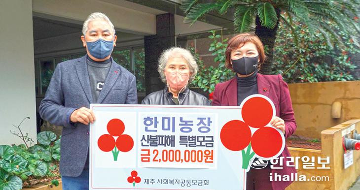 유한회사 한미농장(대표 최명옥)은 지난 18일 강원·경북지역 산불피해 지원을 위한 성금 200만원을 제주사회복지공동모금회(회장 강지언)에 기탁했다.