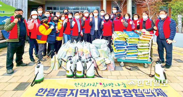 제주시 한림읍지역사회보장협의체(공동위원장 김봉선, 김성철)는 지난 21일 코로나19에 취약한 저소득층 58가구를 방문해 방역 물품, 쌀 등 생필품을 전달했다.