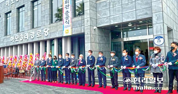 서귀포시 대정읍 하모3리 마을회(이장 김은준)는 김태엽 서귀포시장을 비롯해 도의원, 관내 기관단체장 등 주요 내빈과 지역 주민 등 150여 명이 참석한 가운데 지난 25일 하모3리 마을회관에서 신축 기념 준공식을 개최했다.