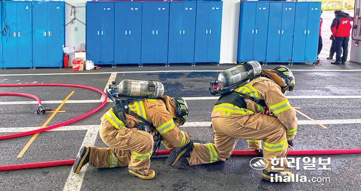 서귀포소방서 대신119센터(센터장 문경진)는 지난 26일 화재현장 소방활동 중 소방대원이 고립되는 상황을 대비해 소방호스를 활용한 비상탈출 훈련을 실시했다.