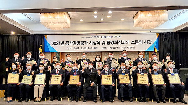 신협중앙회 제주지역본부(본부장 김도원)는 지난달 30일 메종글래드호텔에서 2021년 경영평가 시상식을 개최하고 신협중앙회장(중앙회장 김윤식)과의 소통의 시간을 가졌다.