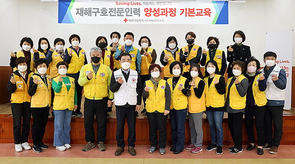 대한적십자사제주특별자치도지사(회장 오홍식)는 지난달 26일부터 30일까지 적십자사 나눔홀 및 서귀포시자원봉사센터에서 적십자 봉사원 42명을 대상으로 재해구호전문인력 양성교육 기본과정을 실시했다.