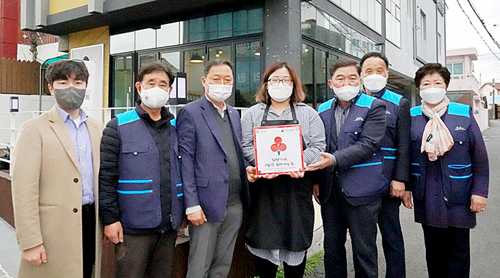제주시 용담2동 소재 카페 카페더문(대표 유은주)은 최근 매장 앞에서 용담2동지역사회보장협의체와 제주사회복지공동모금회가 함께 진행하는 착한가게 캠페인에 동참하고 현판 전달식을 가졌다.