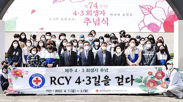 대한적십자사제주특별자치도지사(회장 오홍식)는 지난 1일부터 3일까지 의귀리·가시리·금악리 4·3길 및 제주4·3평화공원에서 RCY 단·회원 및 지도교사 130여 명이 참여한 가운데 'RCY 4·3길을 걷다'를 개최했다.