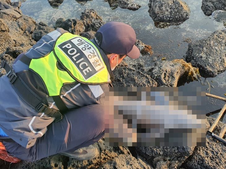 지난 6일 제주시 조천읍 조천항 인근에서 발견된 상괭이 사체. 제주해양경찰서 제공