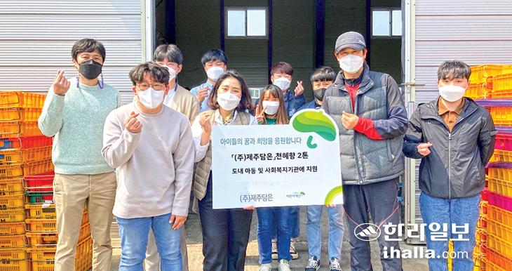 초록우산어린이재단 제주지역본부(본부장 박정숙)은 지난 7일 제주시 애월읍 소재 청정제주먹거리 유통판매 주식회사 제주담은(대표 정민) 후원으로 도내 아동 및 사회복지기관 22곳에 천혜향 2t을 지원했다.