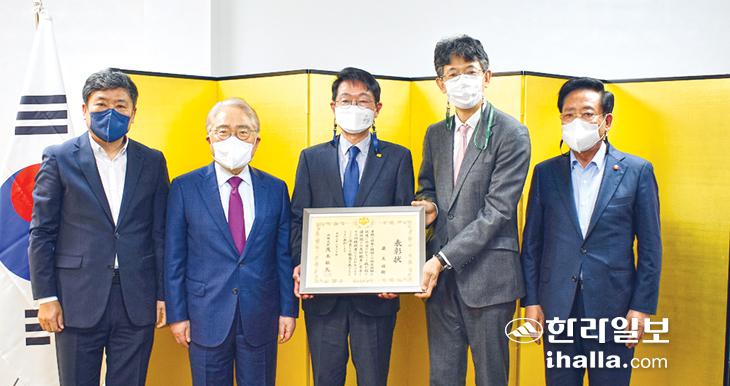 주제주일본국총영사관은 지난 7일 관저에서 양문석 제주상공회의소 회장에 대한 '2021년도 일본국 외무대신 표창' 전달식을 개최했다.