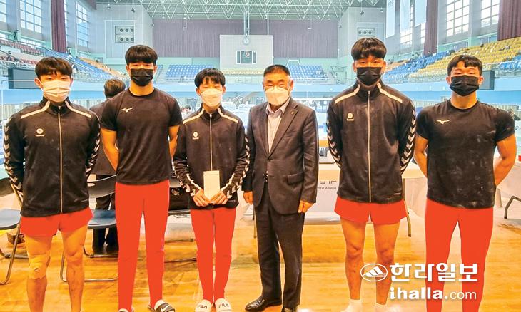 강창용 제주특별자치도체조협회장은 지난 8일 강원도 홍천체육관에서 열리는 제77회 전국종별체조선수권대회 겸 국제대회 파견 대표선발전(8~10일)에 참석해 제주선수단에게 격려금을 전달하며 선전을 당부했다.