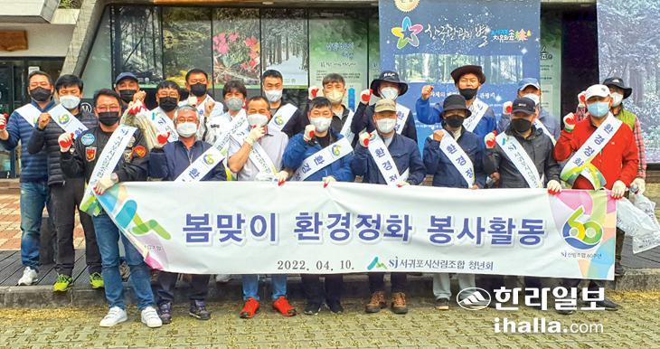 서귀포시산림조합 청년회(회장 김선봉)는 10일 회원 30여명이 참여한 가운데 서귀포시 호근동 서귀포치유의숲길을 걸으며 쓰레기를 줍는 환경정화 봉사활동을 펼쳤다.