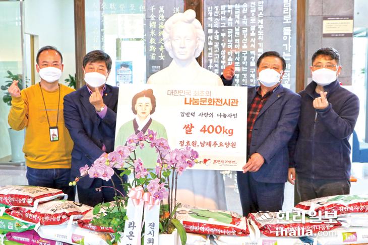 김만덕기념관(관장 김상훈)은 최근 연화원과 남제주요양원 등 노인복지시설을 방문해 생활에 어려움을 겪는 노인들을 위해 김만덕 사랑의 쌀 400㎏을 지원했다.