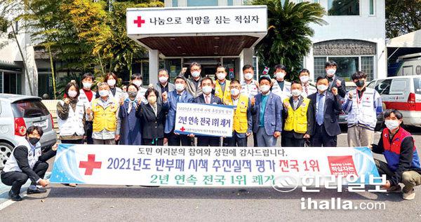 대한적십자사제주특별자치도지사(회장 오홍식)는 대한적십자사 전국 44개 기관을 대상으로 실시한 2021년도 반부패 시책 추진실적 평가에서 2년 연속 전국 1위를 달성했다고 10일 밝혔다.
