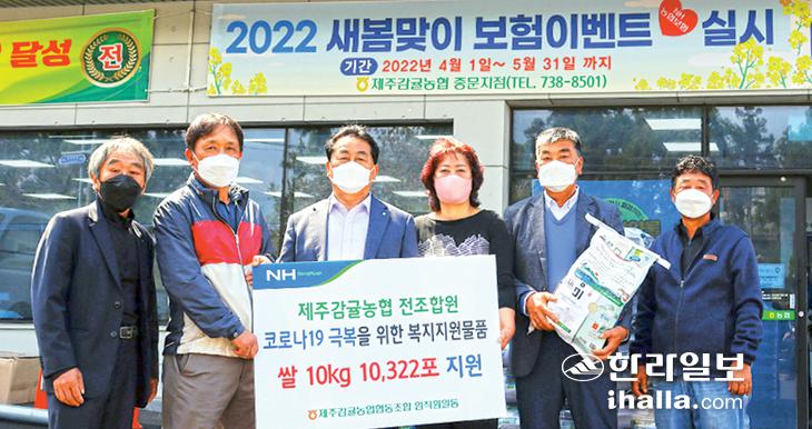 제주감귤농협(조합장 송창구)은 코로나19 장기화로 인한 지역사회 경기침체 극복 및 조합원의 복지증진을 위해 전체 조합원들을 대상으로 복지지원물품(쌀 10㎏, 1만322포)을 지원했다고 12일 밝혔다.