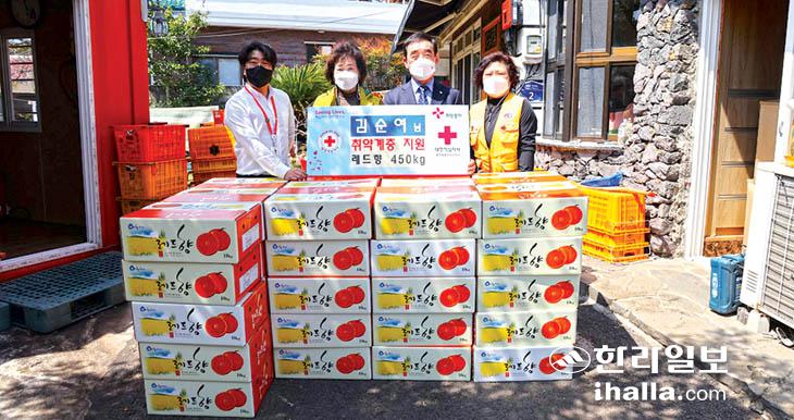 김순여(제주관광대학교 사회복지과 2학년)씨는 지난 11일 서귀포시 남원읍 자택에서 대한적십자사제주특별자치도지사(회장 오홍식)에 취약계층 지원을 위한 레드향 450㎏(500만원 상당)을 전달했다.