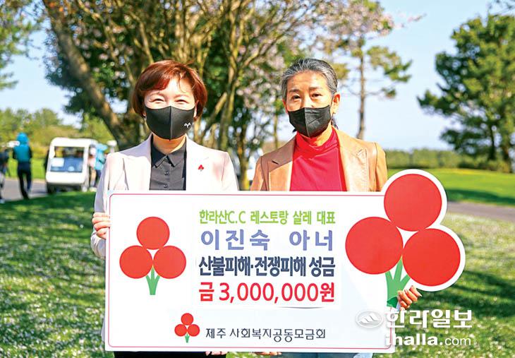 이진숙 아너 소사이어티 회원(한라산C.C 레스토랑 살레 대표)은 지난 12일 한라산C.C에서 우크라이나 전쟁피해와 산불피해 지원을 위해 사용해 달라며 300만원의 성금을 제주사회복지공동모금회에 기탁했다.