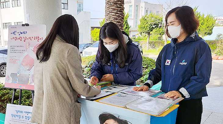 제주시 조천읍은 지난 18일부터 22일까지 사단법인 함께하는 사랑밭(제주지부장 박소민)과 함께 국내외 결손 가정 아동보호 캠페인과 미아 예방 팔찌, 목걸이 보급 활동을 진행하고 있다.