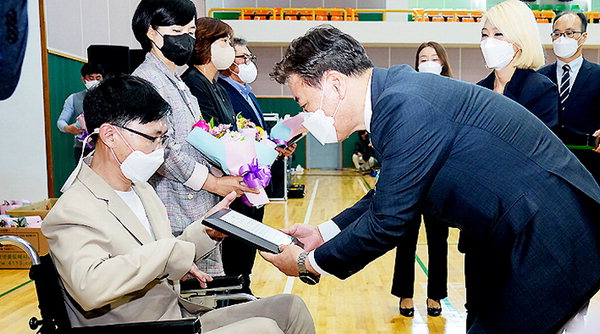 장애인복지유공자 보건복지부장관 표창은 대정읍 장애인지원협의회 이정현 회장이, 제주도지사 표창은 강기택씨 등 24명이 받았다.