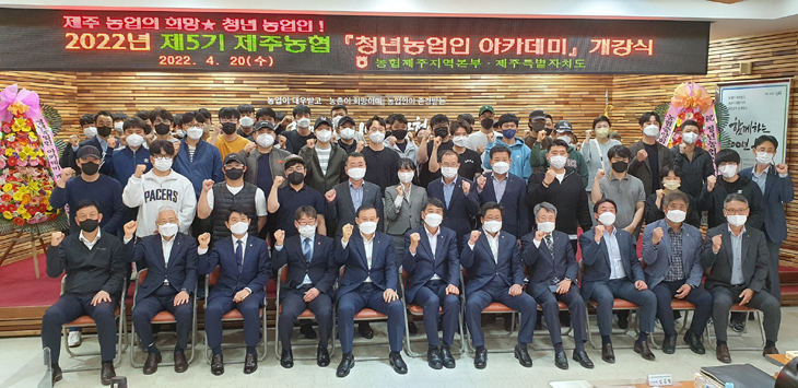 농협제주지역본부(본부장 강승표)는 지난 20일 본부 대회의실에서 교육생 65명이 참석한 가운데 제5기 제주농협 '청년농업인 아카데미' 개강식을 가졌다. 아카데미는 오는 9월까지 6개월 과정으로 매수 수요일(4시간씩)마다 총 100시간 과정으로 운영된다. 주요 교육과목은 농업기술, 마케팅, 교양, 현장실습 등이다.